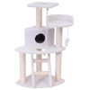 The La Casa cat home is covered in Faux Sheepskin with Sisal Rope wrapped posts that will withstand the toughest claws. This beautiful playground features two flat perches, a dangling toy and a nestling cup for long afternoon naps.